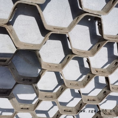 六边均有孔相互联通,易弯曲弧度,点焊在壳体内壁后,浇上耐火骨料,可增加使用寿命数倍,而且耐火材料不会剥落,使用寿命长。