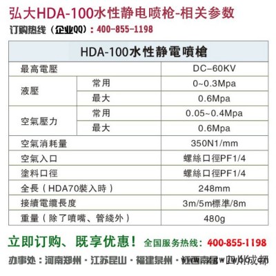 水性油漆静电喷枪 HDA-100水性静电喷枪价格——立即订购热线:400-855-1198