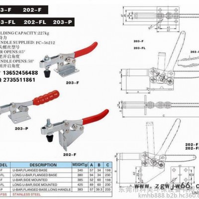 【型号】 202FL/203FL:夹持力250KG;压把移动95°;把手移动62°。